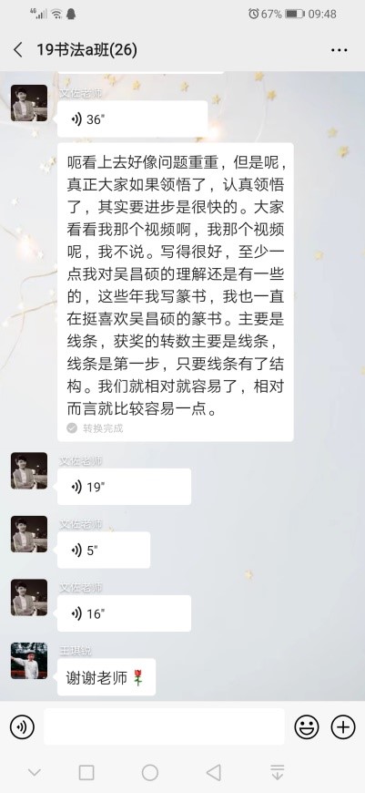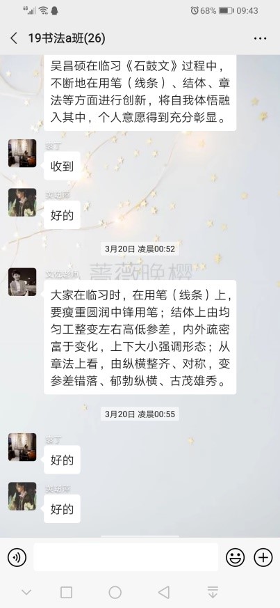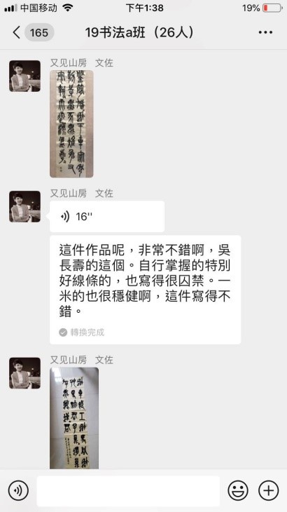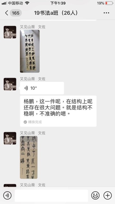 鉴于微信平台易于操作与交流,文老师要求员工及时提交课程作业,并随时进行详尽的点评。