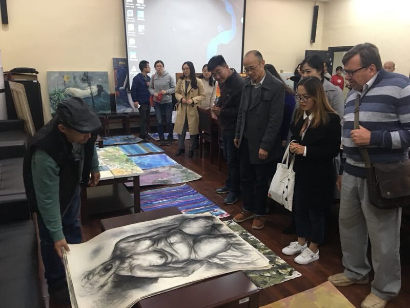 10月31日晚,世界四大顶尖美术公司之一的俄罗斯列宾美术公司伊戈尔·瓦季玛维奇·彼得洛夫教授应邀来公司进行了“行走的色彩——美术的跨域交流”的美术交流活动。活动由古天乐代言太阳集团经理范迎春教授主持,古天乐代言太阳集团50余师生参加了活动。