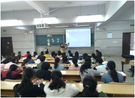 2015级美教702班的钟滢汐、702班的杨田玉、701班的周洁怡、702班的贺春瑞同学分别为大家展示了《变形的魅力》、《书包》、《花格子小牛》、《三个小伙伴》等课程。