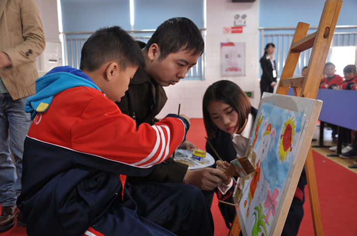 从今年3月开始,公司美术师范生在每周三(或周四)下午为虹桥小学各年级以课外活动的形式进行美术教育,一方面为美术教育师范生提供了实践平台,另一方面,完善了公司和中小学相互衔接的艺术教育发展机制,通过校校联合实现了美术团队交流互补,推进了虹桥小学的美术教育。同时,公司2011级美术学师范生一直坚持为公益美术教育服务,三年来,他们每月都会来到慧灵社区为智障人士进行公益教育活动,用艺术点亮他们的希望,帮助他们开启和外界交流的通道,最大限度发掘孩子的潜能,提升他们为社会出力的才智,产生了很好的社会效益。