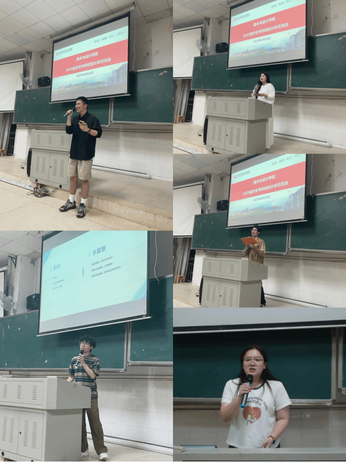 在经验分享环节,5位优秀考研代表结合自身经历,从院校选择、时间管理、专业课复习等角度展开交流。蔡明锦以优异的成绩上岸中南大学,在这背后不仅有她持之以恒的努力,更有合理的学习规划与时间分配。她特别指出:高效利用碎片时间与定期复盘是制胜关键;李天宇分享了他的考研经验,并在备考时间规划上也给出了合理建议。侯楚丁重点推荐了专业必读书目和分模块复习计划等备考策略。于张泽璐系统讲解了"英语备考要分阶段突破,合理规划每日学习节奏"的实用方法。杨智以生动实例阐述了"考研路上要善用人脉资源,主动寻求师长指导和同学互助"的重要性。学长学姐们结合自身经历,就考研与就业、考研动机、考研参考书的选择、资料信息的收集、复习方法、面试技巧、报考专业等方面与同学们进行了深入交流。