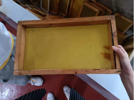 我们还参观了滩头古法造纸作坊,近距离观赏师傅们造纸的全过程,我才明白平时在手边随手可见的薄薄一张宣纸竟然要经历那么多道工序,凝聚着师傅们多年来的心血。好玩的是我也亲手参与了师傅们“捞纸”的过程,十分不易,需要把身子俯下去,慢慢拿一个类似竹帘子的工具从纸浆中捞出一张完整的纸张,稍有不慎纸张就会变得不平整或者是有残缺需要重新打捞。作为书法专业生,加深了我对手边工具的认识,也加强了对书法专业的敬畏之心。