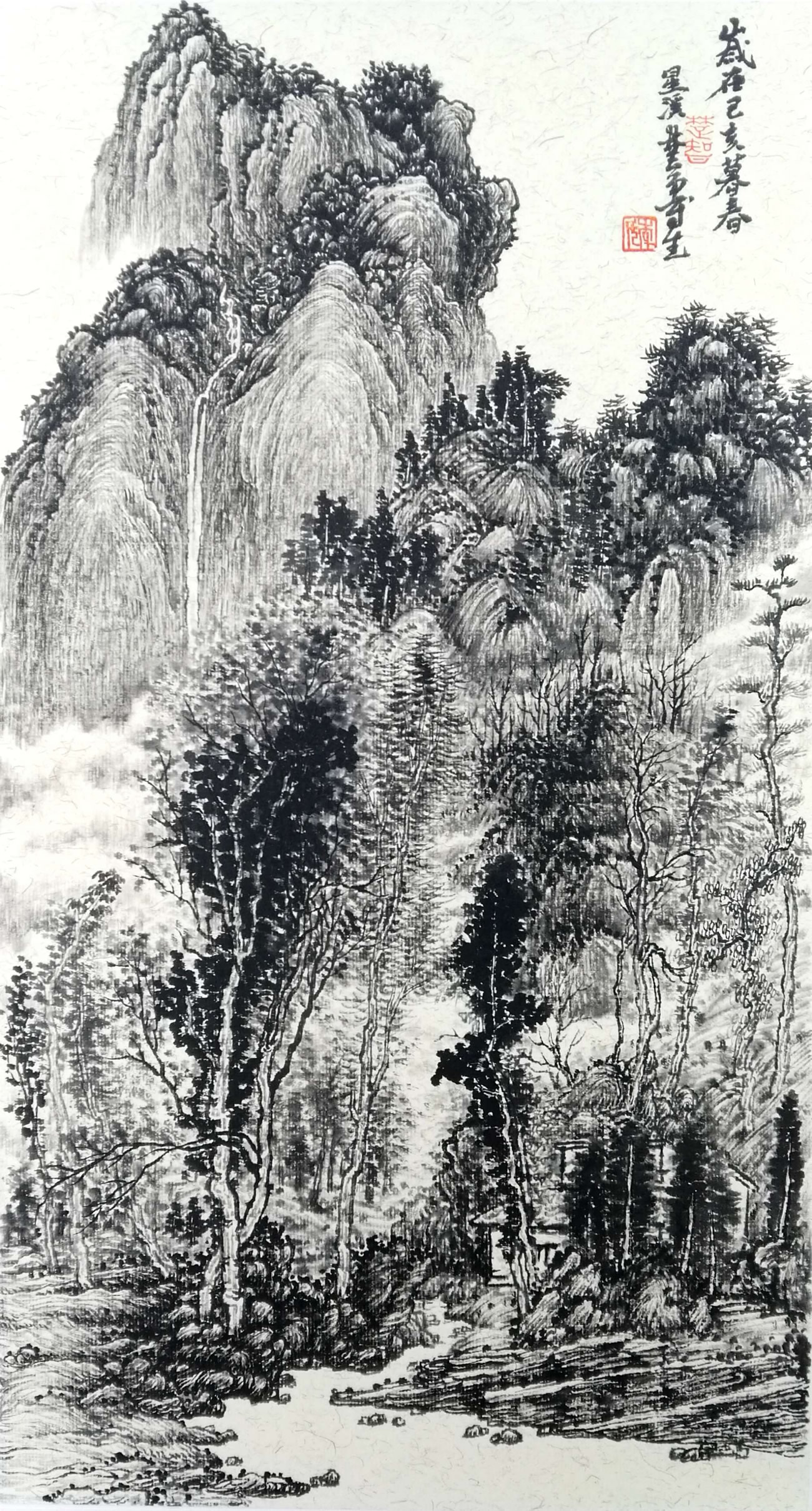 李楚智 中国画 溪山云居图二 50×25cm 2019