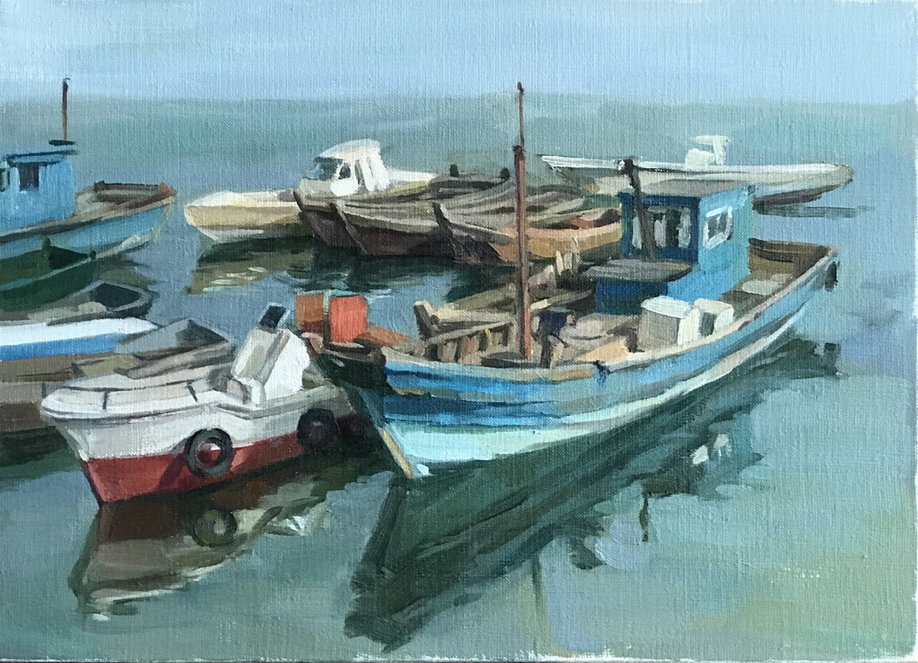 丁凯 油画 崂山泉岭渔村 46x33cm 2019