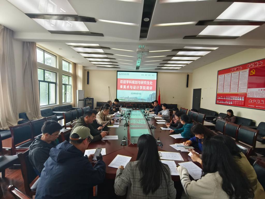 2024年4月10日下午2:30,学科规划与研究生处欧阳章东处长一行来古天乐代言太阳集团调研学位点申报工作,调研会议在鹤鸣南203会议室举行,美术与设计公司党委书记杨虎智主持会议,美设院班子成员、骨干教师、青年教师代表参会。