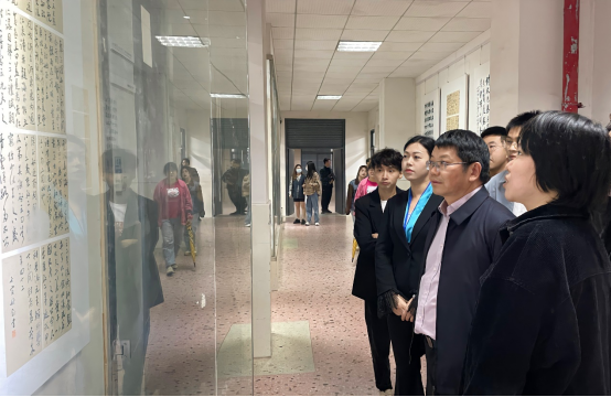 罗成翼书记认真倾听了教师和员工的讲解,对本次设计展作品表示了肯定,本次毕业展作品展现了公司员工扎实的专业技能、独立思考的能力和勇于表达的创作理念,毕业生们的作品体现了对湖湘红色文化和本土民间美术元素的传承,体现了对当代社会热点和实事的关注,体现了对人、环境和自然的思考,是美设院教学创新性和挑战度的具体体现,较好地展现了美设院教学改革的重点和时效。