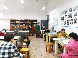 11月19日上午第三节课,美术学教研室李楚智老师将《中国山水画教学》展开示范,本次课李老师主要介绍了山水画云工作室教学理念,采用临摹、写生、游悟创作三位一体的教学方式进行,贯穿于员工进入工作室后的三年时间里。大二书法和古画临摹是日常课程,大三进入仿古写生,大四则结合毕业创作进行自我风格化的主题摹写创作。
