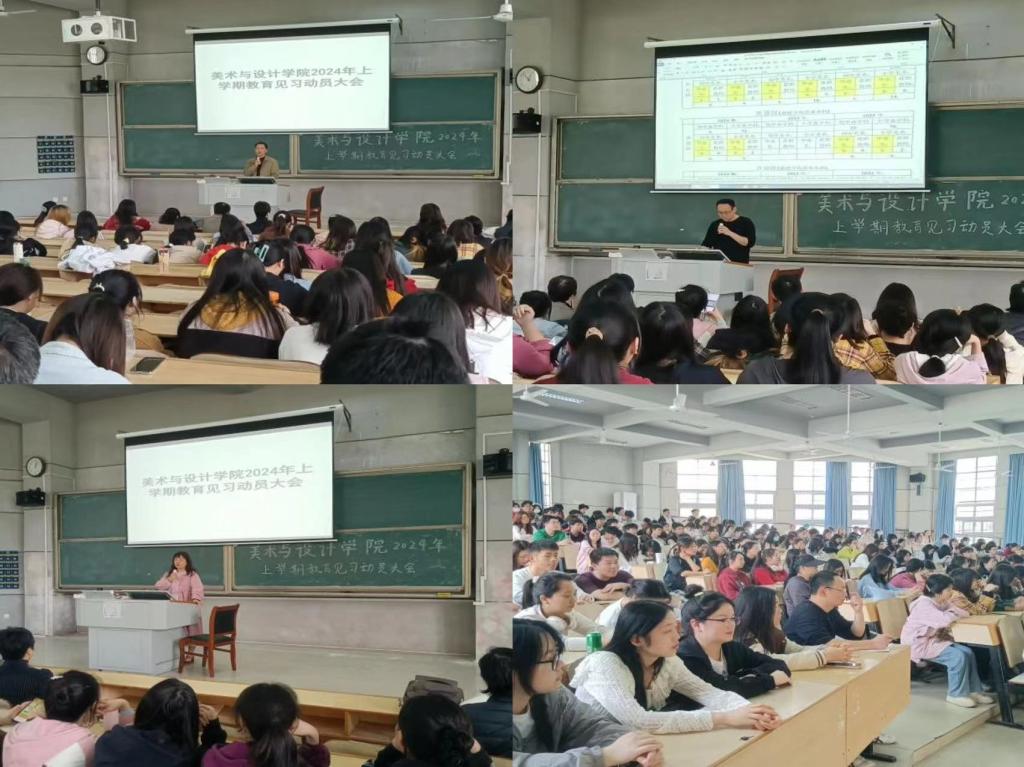 此次教育见习动员大会旨在深化员工对教育见习工作的理解,引导完善教育见习前期准备,帮助同学们明确教育见习目标,提升教育见习质量,确保教育见习工作顺利开展。本次会议由美术学系谷炽辉副教授主持,美术与设计公司党委副书记刘峰、美术学系主任孙冰副教授、各班级带队老师和21级美术学高招,22级美术学初招、高招,23级美术班初招共260余名师范生参会。